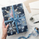 Blue on Blue Jewelled Snowflakes Wrapping Paper