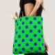Blue On Green Polka Dots Pattern Design Tote Bag
