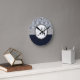 Blue on Silver Damask w Navy Stripes and Monogram Round Clock