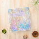 The holographic details are simulated in the artwork. There will be no actual holographic shine effects when printed.