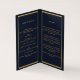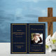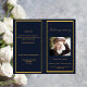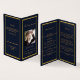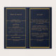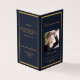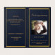 Un programme élégant de 4 pages. Un arrière - plan bleu foncé, un cadre en faux or et un espace pour votre photo. Personnalisez et ajoutez le nom, les dates et votre texte.