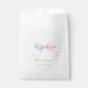 Delight your guests with treats in this “Blue or Pink?” gender reveal peach favour bag, designed with a sweet gingham bow background for a cohesive baby shower look.