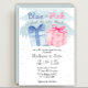 Blue or Pink What do you think Gender Reveal Invitation featuring green Christmas tree and blue and pink pastel packages