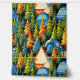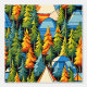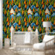 Blue and orange tents nestled in pine trees graphics. Cool stick and peel wallpaper for those that love camping.