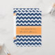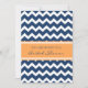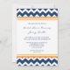 Bridal Shower invitations in elegant orange, dark navy blue and white retro and casual chevron zigzags stripes pattern, chic and feminine, customizable with your shower details. Also available in thank you cards and invitations for the bridal party.
