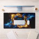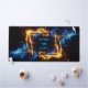 Dominate your gaming setup or workspace with an accessory that radiates pure, epic energy. This massive horizontal desk mat features a spectacular, glowing rectangular frame made entirely of dynamic elemental magic. On the left, fierce blue energy crackles with intensity, seamlessly blending into roaring orange and yellow flames on the right.