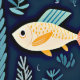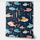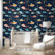 Blue & Orange Fish Swimming on Dark Blue Wallpaper