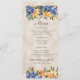 Blue Orange Floral Fall Autumn Wedding Menu