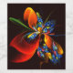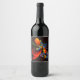 Blue Orange Floral Modern Abstract Art Pattern #03 Wine Label
