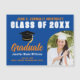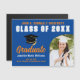 This modern blue and orange custom senior graduate photo magnet features your graduation photograph next to classy white typography of your college name for the class of 2025. Customize with your graduating year under the chic black handwritten script and black grad cap for a great grad announcement magnetic card.