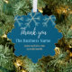 Blue orange snowflakes add business name christmas ornament card