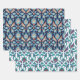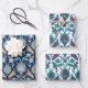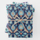 Blue Orange Teal Red White Oriental Floral Pattern Wrapping Paper Sheet
