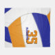 This cozy volleyball themed fleece blanket for a girl or boy features a simple, abstractly enlarged royal blue, orange and white volleyball that covers the entire blanket - athlete's name and jersey number are positioned off centre, customizable in coordinating blue and orange - by katz_d_zynes