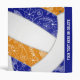 This girly volleyball themed 3 ring binder for her features the abstractly oversized image of a volleyball that has blue, orange and white panels mirrored on the front and back cover - a doodle pattern of paislies, flowers and feathers in white covers the volleyball's blue and orange panels - personalize with the athlete's name - by katz_d_zynes