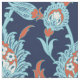 Colourful blue, cyan, white and orange terracotta vintage Turkish oriental floral pattern on a navy blue background.
