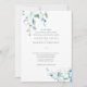 This elegant watercolor wedding invitation showcases hand drawn modern watercolor floral designs, featuring delicate painted flowers and leaves in shades of dusty blue and turquoise on a crisp white background. The bride and groom's names and wedding details are displayed in a classic modern botanical sans serif font, offering a chic yet timeless touch. The reverse side features a solid, complementary turquoise colour. Perfect for tropical destination weddings in Florida or Hawaii, this invitation is ideal for couples planning dusty blue weddings in any season—whether spring, summer, fall, or winter.