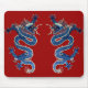 Blue oriental dragons antique Chinese embroidery Mouse Pad