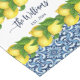 Blue ornate Amalfi Italian tiles and lemons with a name table runner. Can be a personalized gift for any occasion as a wedding, anniversary, new house, or a birthday party.
