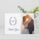 Blue oval leaves monogram wedding Photos QR Code Thank You Card