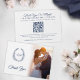 Show your appreciation to your guests or wedding attendants with this monogram thank you QR code photos link wedding thank you card. Perfect to show your appreciation for those who attended your wedding and to thanks guests for kind gifts as well as giving them access to all your photos from your special day. Simple blue and white monogram oval leaf wreath design. Customize this card with your favourite wedding photo on the front and your QR code link to your wedding photos for your guests to see them all, then add a special personalized message to extend your thanks. Unique hand drawn monogram oval leaves art and design by Sarah Trett exclusively for www.mylittleedenweddings.com only on Zazzle.