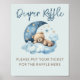 Blue Teddy Bear Over the Moon Baby Shower Poster. Add a touch of whimsy and fun to your "Over the Moon" baby shower with this adorable diaper raffle sign! Featuring a cute teddy bear peacefully sleeping on a crescent moon, surrounded by soft clouds and twinkling stars, this sign is the perfect way to guide your guests to participate in the diaper raffle. The playful phrase "Diaper Raffle, Please Put Your Tickets for the Raffle Here" ensures that your guests know exactly where to drop their tickets, making the raffle a seamless and enjoyable part of your baby shower.