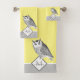 Blue Owl Grey and Yellow Monogram name Bath Towel Set