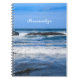 A notebook with a photograph taken on the Oregon Coast of the beautiful blue Pacific Ocean, waves crashing on the sand and jagged rocks. Personalize by adding your name. Perfect for beach lovers.
