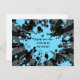 Cute postcard paintball birthday party thank you with blue and black paint splatters on a grungy grey, black, and blue sunburst patterned background.