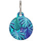 Blue with hints of purple, Tropical Palm Tree Leaves pet ID tag personalized with your pet's name.