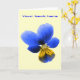 This greeting card features a photograph of a wild Pansy flower. The photo has been artificially coloured resulting in a pansy with light and dark shades of blue and a pale yellow centre. The background is pale yellow to show off the beauty of this flower to the maximum. There is customizable blue text on the front of the card for you to personalize it, making it suitable for anyone and any occasion of your choice. The inside of the card is blank.