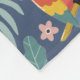 This fleece blanket has a fun tropical pattern featuring a pink, red, gold and blue parrot. Along with the repeated parrot images are soft blue tropical leaves and pink flowers. At the top is a solid matching blue border that holds your monogram in coral, and your name written in white script over it. Be sure to see the matching home decor products in our store.