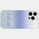 This phone case design features a pastel blue ombre background with darker blue script name and white initial letter monogram. Personalize the text fields, remove any or all text or click customize to select a font style, size, and colour you like.