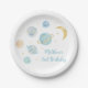 Blue Pastel Two the Moon Space Birthday Paper Plate