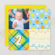 Blue Patchwork Pattern Squares Boy Photo Birthday Invitation