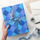 Blue squares like a patchwork quilt is the pattern of this wrapping paper.