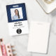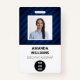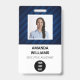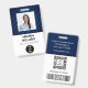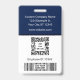 Classic, clean and simple employee name badge with custom logo, QR code, and barcode.