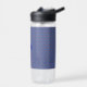 Blue wildflowers with a delicate pattern, a vibrant red poppy, and a clear water bottle. A personalized drinkware item, custom-made with a name of your choice. The design features blue wildflowers in a repeated pattern, alongside a single, striking red poppy. This custom water bottle can be personalized with any name you desire, making it a unique and thoughtful gift.