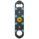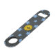 Personalized monogram design with seamless dark blue pattern with stars; with round golden yellow label for custom monogram