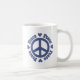 Peace mug with faded blue peace sign and hearts. Customizable colour coordinated text on reverse side, don't forget to edit! Choice of ceramic mug or travel mug styles.