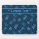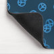 Random peace symbol pattern mousepad in blue with editable text field. Personalize with any string of letters, numerals or text symbols.