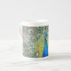 Enjoy a cup of coffee, tea, or hot chocolate in this pretty, bone china mug that features the photo image of a beautiful, blue Peacock with colourful feather plumage.