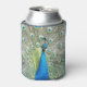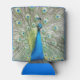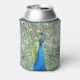 Keep your soda pop can and other drink beverages cold with this trendy, insulated can cooler that features the photo image of a blue Peacock with colourful feather plumage.