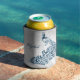 Keep your beverages cold in the summertime with a Blue Peacock Personalized Can Cooler. Cooler is a visually striking item, featuring a vibrant metallic blue peacock with iridescent feathers shimmer with hues of sapphire blue, and cobalt, creating a bold and luxurious focal point. Set against a grey grunge background, adorning the design are delicate white leaf botanicals, intricately woven around the peacock. These leaves add a touch of elegance and nature-inspired softness, softening the grunge background’s roughness while complementing the peacock’s regal presence. Elegant script lets you add your name or recipients name for a personal gift.