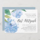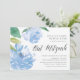 Sweet floral invitations for bat mitzvahs feature watercolor peonies in soft blues, accented with lush greenery. Customize with your Bat Mitzvah details aligned at the right and embellished with chic calligraphy. Invitations reverse to solid light blue.