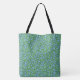 Blue Periwinkle Ditsy Floral Pattern on Green Tote Bag
