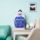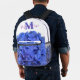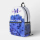 Blue periwinkle elegant floral hydrangeas monogram printed backpack