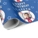 Blue Personalized Baseball Ball Birthday Photo Wrapping Paper