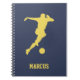 This blue notebook features a gold silhouette of a soccer player. Great as a birthday or Christmas gift for kids who love soccer. Ideal for homework, journalling etc. Use the design tools to customize the name and font.