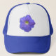This design features a photo of beautiful a blue petunia with shades of purple and a white centre. It is shown here on a blue peaked hat but other colours are available.