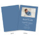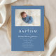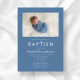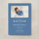 Personalized Blue Photo Religious Cross Boy Baptism Invitation Card.